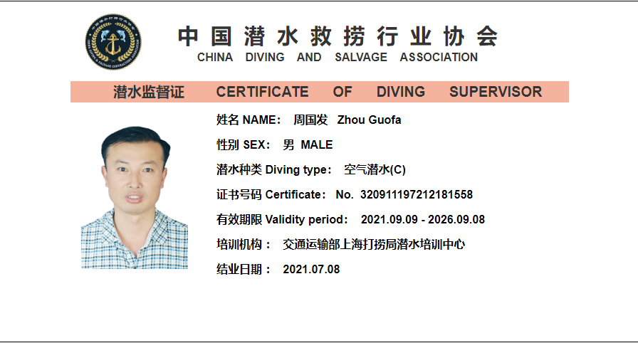 | Issuing Authority: | 中国潜水救捞行业协会 | Issue Date : | 2021-07-08 |
