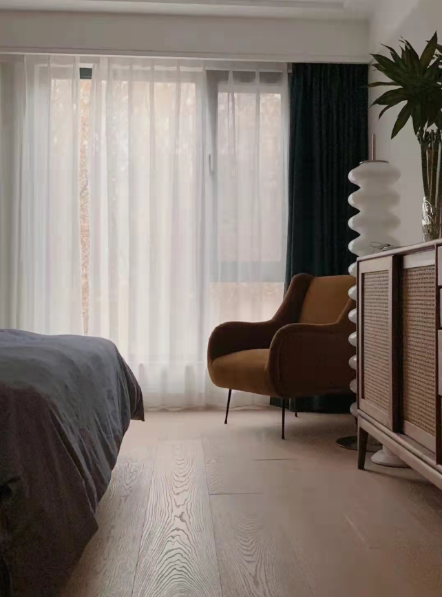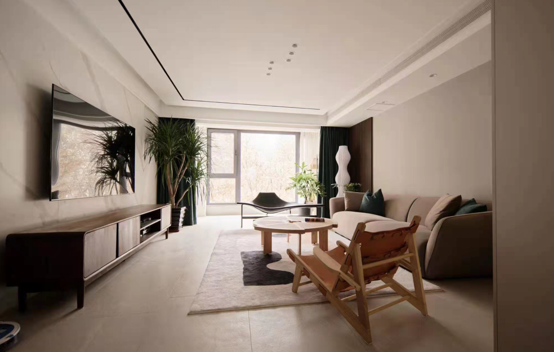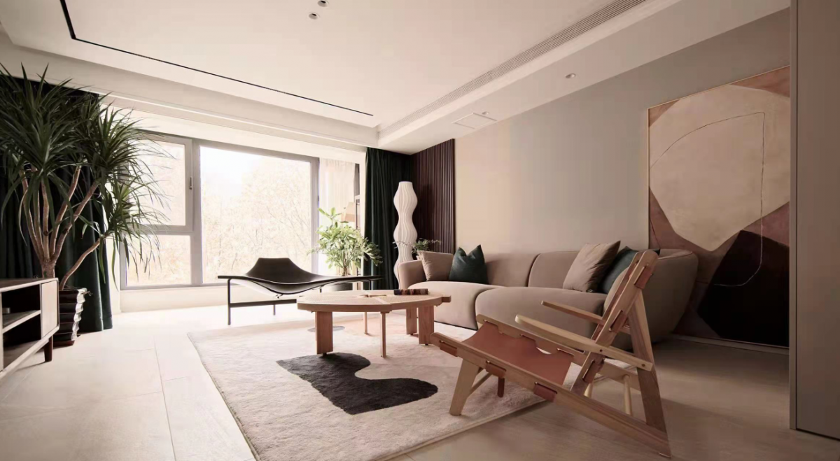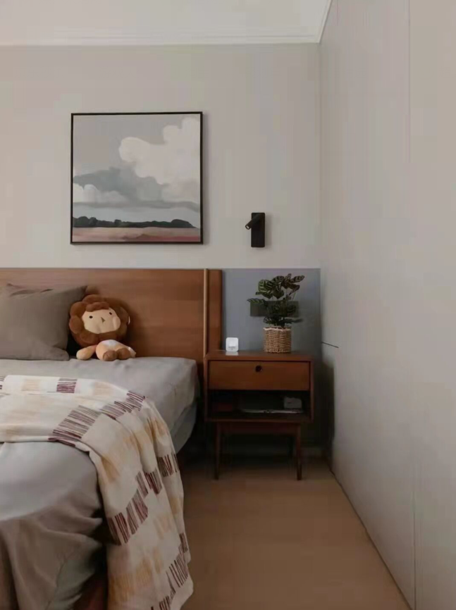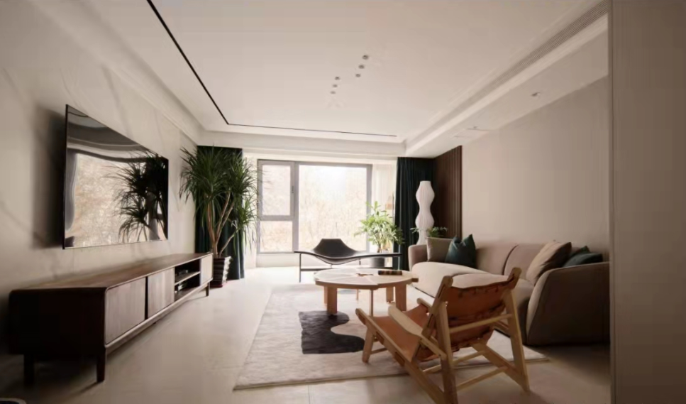 The previously fragmented windows in the living room have been transformed to create a complete and spacious design with unobstructed views. The openness between the living, dining, and kitchen areas greatly enhances the comfort and interaction of the户型. Materials are all chosen from the matte series for an eco-friendly touch. The environment is designed to be soft and relaxing, with a hint of leisure. Under the calming ambiance of earthy tones,局部 bright colors add vitality and fun to the space.