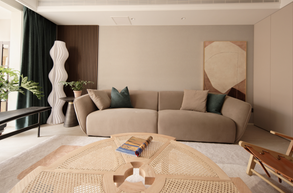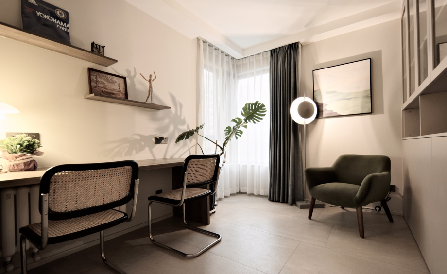This project was photographed six months after occupancy. It authentically showcases practicalist home decor art. It accommodates three residents: parents and their son, with the elders occasionally staying over. For medium to large-sized homes, it's essential to highlight the spacious aspect while fulfilling functional needs. The originally enclosed kitchen has been opened up. The relatively enclosed guest bathroom wash area has been opened. The previously enclosed study space has been opened, with sliding doors added for a sense of openness and increased lighting, while maintaining a degree of privacy. No detail is overlooked to enhance the feeling of space or to introduce more light. The materials used are environmentally friendly with a matte finish and quality texture. The color scheme is a warm, muted gray with accent pieces featuring distinctive furniture and decorations. It creates a comfortable, harmonious, and fun living atmosphere.