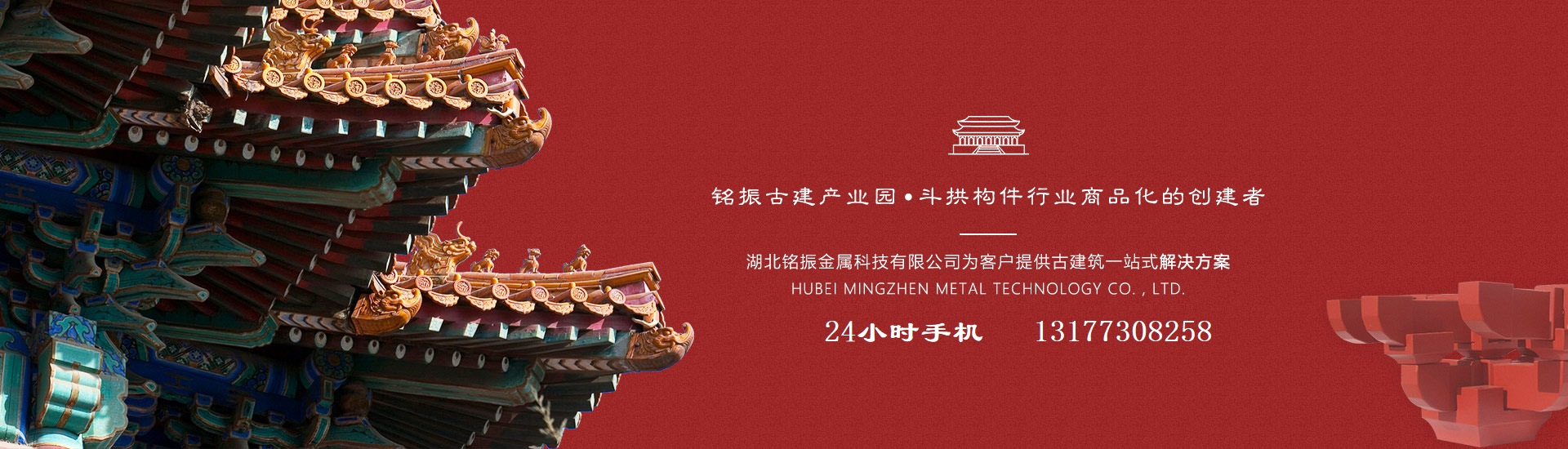 Hubei Mingzhen Metal Technology Co., Ltd., established in 2020, is located in the ancient architecture town of Daye City, Yinzu Town, Mingzhen Ancient Architecture Industrial Park. We specialize in producing: metal dougong arches, aluminum alloy dougong arches, antique-style dougong arches, steel structure dougong arches, aluminum alloy antique doors and windows, metal rafters, steel structure pavilions and corridors, and metal tiles. We offer a one-stop solution for ancient architecture. As a professional unit in research, development, production, and sales of prefabricated components and molds for antique architecture, we are known for our large scale, high quality, comprehensive variety of specifications, and exceptional service. We are the pioneers in the commercialization of dougong arch components and the manufacturer of registered "Mingzhen" brand dougong products and pattern trademarks. "Where there is ancient architecture, there is Mingzhen Ancient Archi...