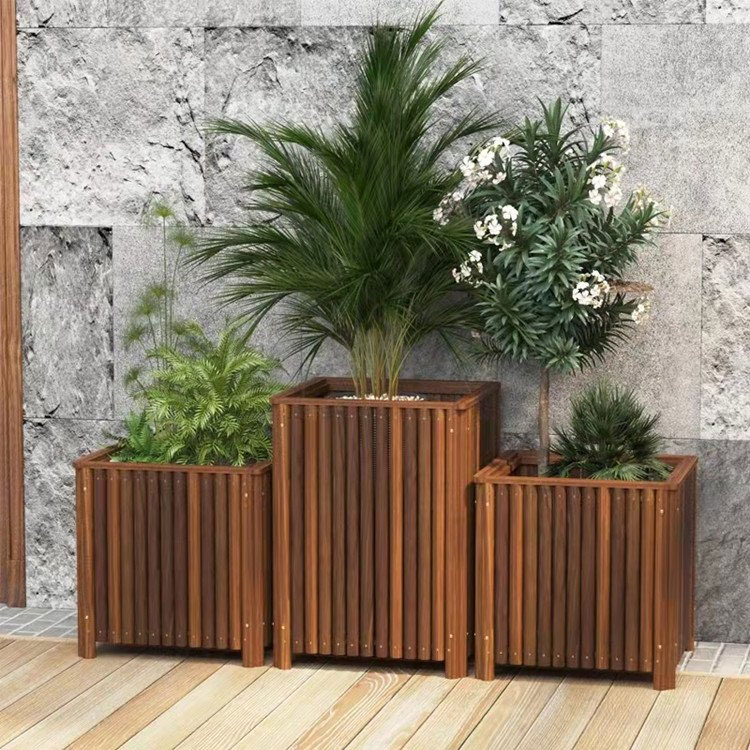 Outdoor Carbonized Wood Flower Boxes, Solid Wood Planters, Flower Beds, Balcony Planters, Scenic Area, Community, Street Planters