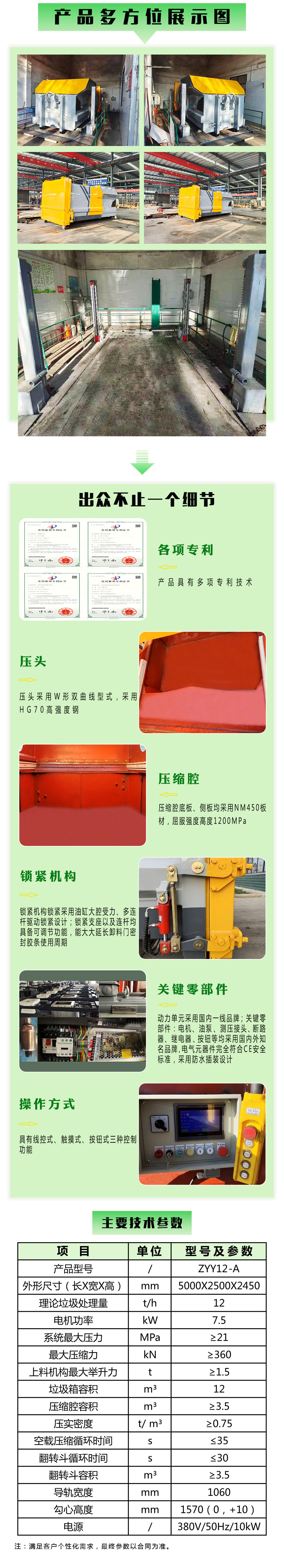 ●The intelligent operation system utilizes a high-integration PLC, featuring multiple self-locking, interlocking functions, and automatic compression cycles. It includes full-load indication, emergency stop, forced return, and safety indication functions; equipped with