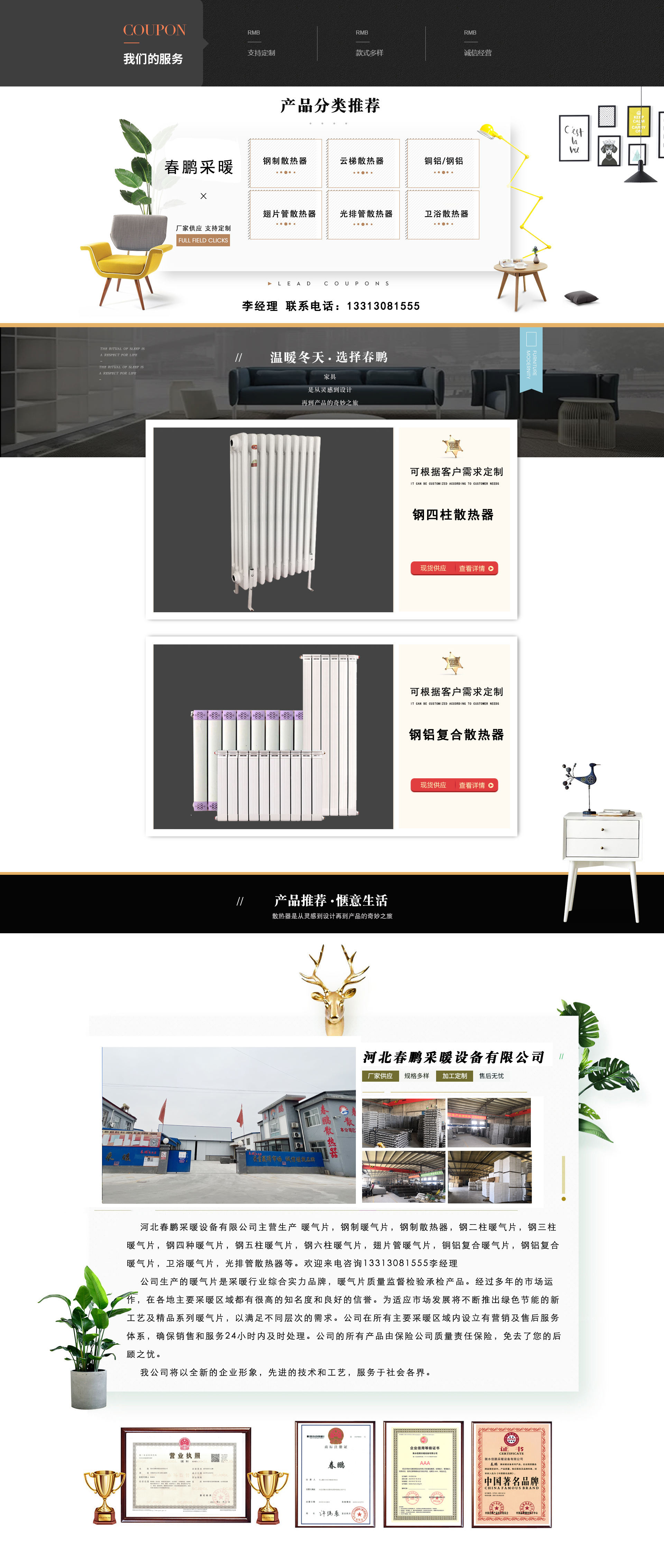 Hebei Chunpeng Heating Equipment Co., Ltd. specializes in the production of radiators, steel radiators, steel heat exchangers, steel double-column radiators, steel triple-column radiators, steel four-column radiators, steel five-column radiators, steel six-column radiators, finned tube radiators, copper-aluminum composite radiators, steel-aluminum composite radiators, bathroom radiators, and light finned tube heat exchangers, etc. Please call for inquiries at 13313081555, Manager Li.Our heating radiators are a comprehensive strength brand in the heating industry, and our radiators are inspected products under quality supervision. After years of market operation, we have gained high recognition and a good reputation in major heating areas across the country. To adapt to market development, we will continuously introduce green and energy-saving new technologies and premium series radiators to meet the needs of different levels. The company has established a marketing and after-sales s...