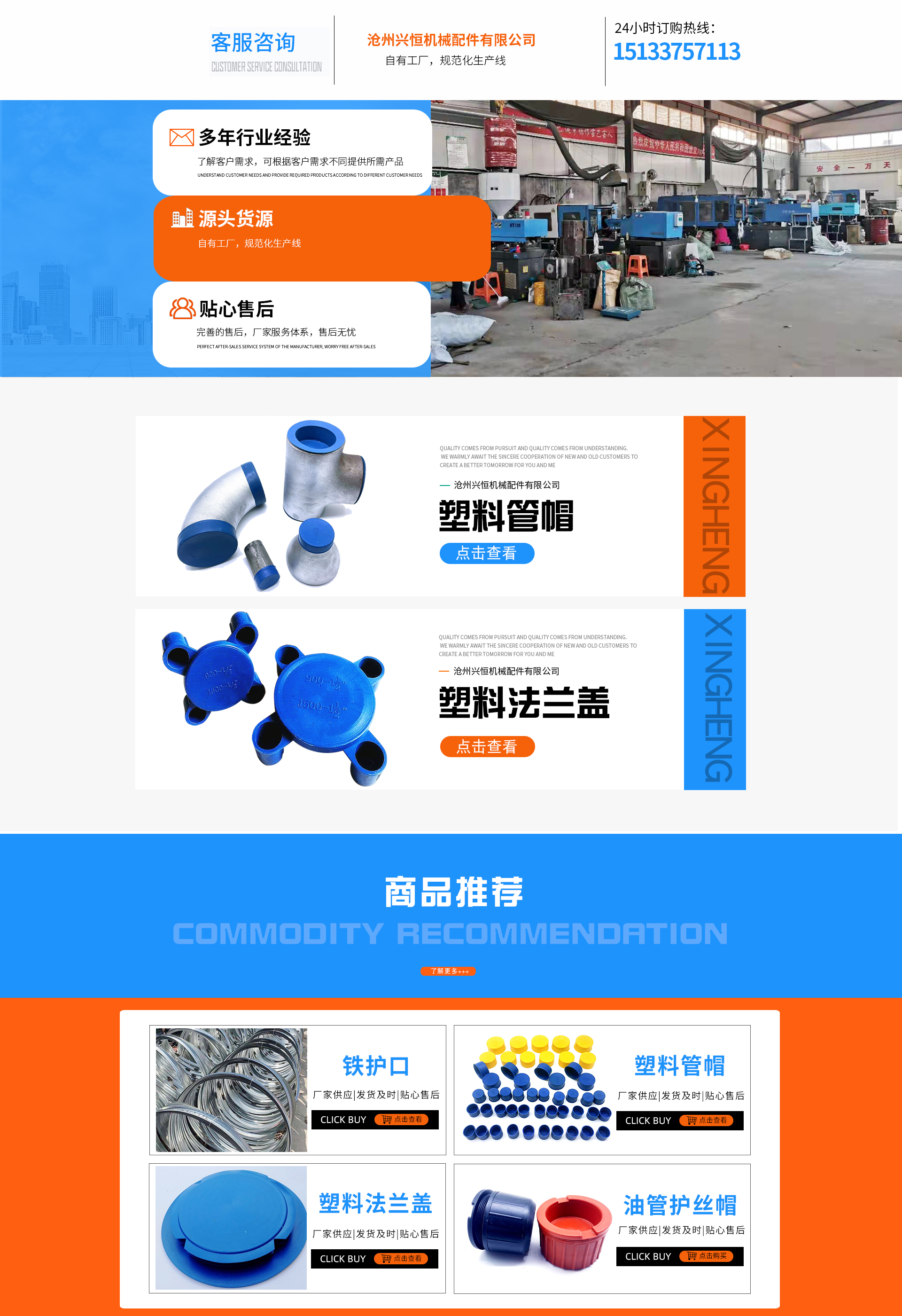 Cangzhou Xingheng Machinery Parts Co., Ltd. is an integrated manufacturer specializing in the processing, customization, production, and sales of wire and cap protectors for drilling rods, including wire protectors and caps for steel pipes, plastic steel, and full steel drilling rods; as well as plastic steel drilling rod protectors, drilling rod packaging supports, oil drilling rod brackets; full steel thread protectors, plastic steel thread protectors; thread protectors, caps, and full plastic thread protectors, oil casing, wire protectors and caps, steel pipe caps, flange covers, iron protectors, and national standard plastic pipe caps. The iron shell for up and down water inlets is one of our main products. Relying on reliable quality, affordable prices, and excellent credibility, Cangzhou Xingheng Machinery Parts Co., Ltd. adheres to a customer-oriented production philosophy, offering a diverse range of products to meet the varying needs of customers. We sincerely hope to estab...