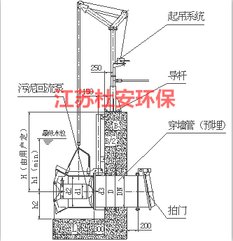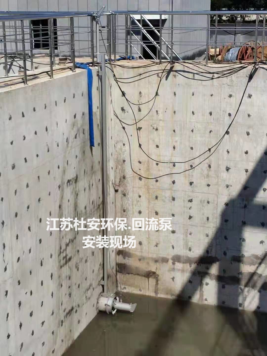 The lifting device is mobile, mounted on the top fixed piece of the guide rail system, including a lifting hook, lifting chain, and winch. The lifting device is equipped with a two-way braking mechanism. Each recirculation pump provides a cable tensioning component and a cable clip to prevent cable damage caused by fluctuations in the mixing water flow.