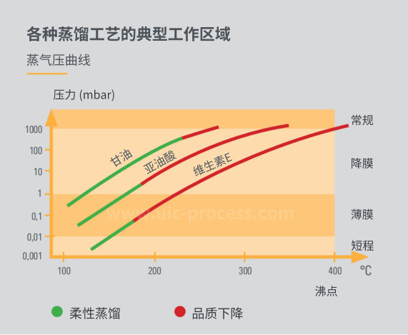 Short-path distillation is a continuous vacuum distillation process. A scraper inside the cylindrical evaporator刮油成薄膜on the heated walls of the evaporator. Components with lower boiling points evaporate from this highly turbulent film. Due to the lower operating temperatures, short-path distillation prevents the thermal degradation of tocopherols. The mild operating conditions prevent the formation of undesirable by-products that can shorten shelf life and reduce efficacy.