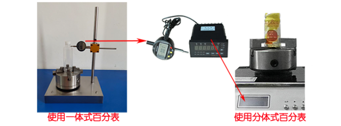 Advantages of the Split-Type Dial Indicator:Looks upscale.Disadvantages:It's not convenient to observe the bottleneck and the contact point with the dial gauge.Advantages of Integrated Dial Indicator:Easier to observe the contact between the measuring head and the neck of the bottle, and to read the measurement data without having to bend down.Shortcomings:It doesn't look upscale.