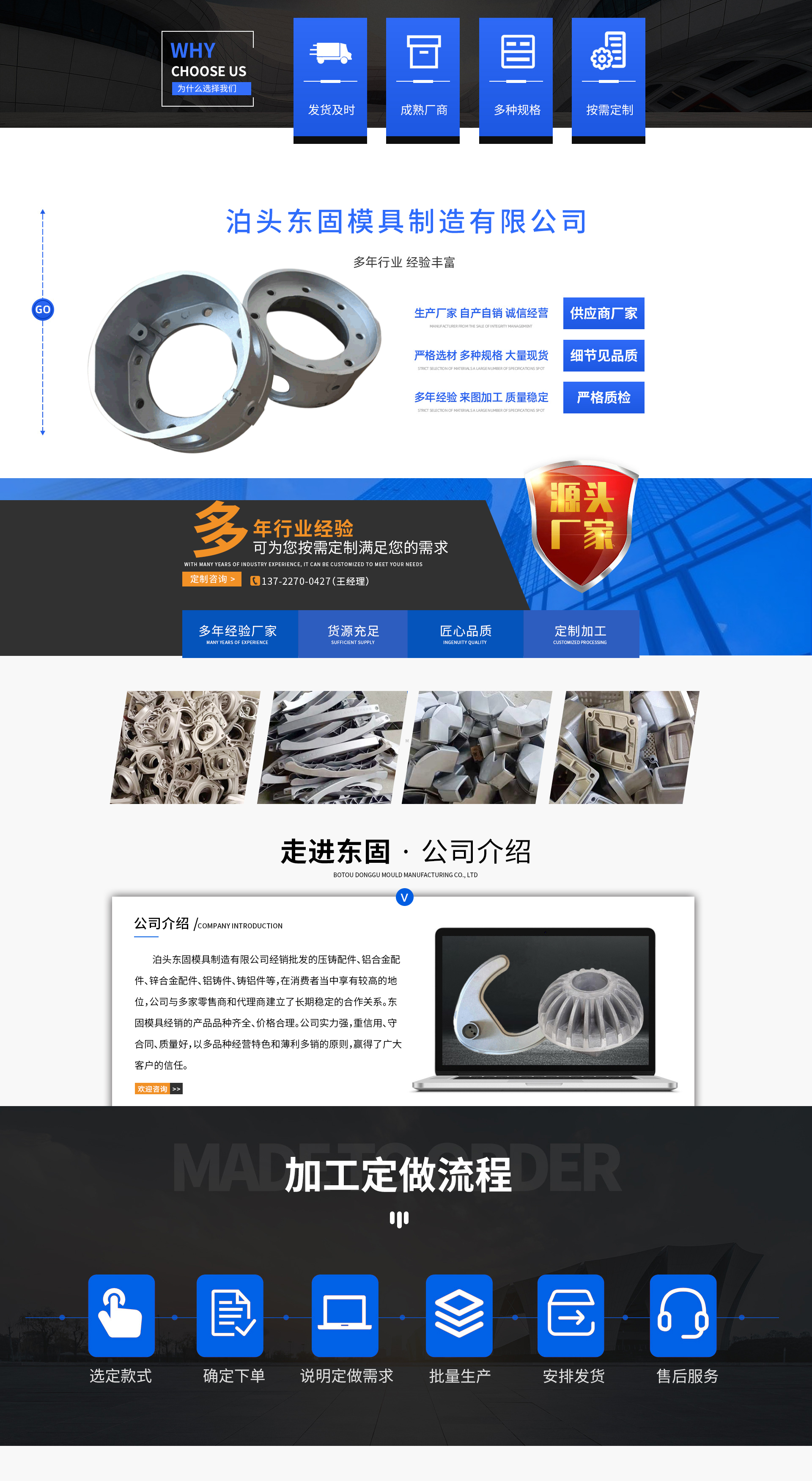 Botou Donggu Mold Manufacturing Co., Ltd. distributes die casting accessories, aluminum alloy accessories, zinc alloy accessories, aluminum castings, and cast aluminum products, enjoying a high reputation among consumers. The company has established long-term and stable cooperative relationships with numerous retailers and agents. Donggu Mold offers a wide variety of products at reasonable prices. With strong capabilities, emphasis on creditworthiness, contract adherence, and high-quality products, the company has earned the trust of a large customer base through its diverse product offerings and the principle of low profit margins and high turnover.Boertou Donggu Mold Manufacturing Co., Ltd. Collaboration Declaration: Leveraging our industry advantages, our products are widely sold across various regions. We commit to a win-win philosophy of "price and quality," delivering high-quality products, rapid service, and favorable pricing to meet our customers' needs. In response to our c...