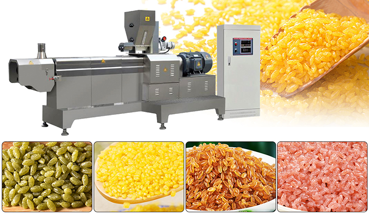 The nutrition rice production line is developed and produced based on the current food nutritional demands, integrating advanced foreign technology, to cater to the production needs of modern enterprises. This equipment aligns with the trend of dietary fortification in modern society, fulfilling the requirement for balanced nutrition while avoiding the investment and operational costs associated with importing foreign equipment. It boasts high automation and energy-saving features. The line processes a variety of grains and cereals, adding vitamins, proteins, and minerals, and after extrusion, maturation, and shaping, it can produce new fortified nutrition rice. The consumption method is as simple and convenient as natural rice, and its nutrition better adapts to the modern pace.