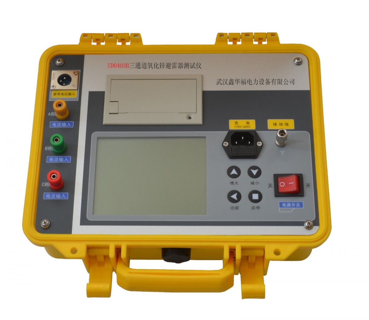 The instrument is easy to operate and convenient to use, with the entire measurement process controlled by a single-chip microcomputer. It can measure the full current, resistive current and its harmonics, AC reference voltage and its harmonics, active power, and phase difference of a zinc oxide lightning arrester. The large screen can display the true waveforms of voltage and current. The instrument employs digital waveform analysis technology and utilizes software anti-interference methods such as harmonic analysis and digital filtering to ensure accurate and stable measurement results. It can accurately analyze the fundamental frequency and3~7The device accurately measures the reactive harmonic content and overcomes inter-phase interference to correctly assess the resistive current of the edge surge arresters. Equipped with a high-speed panel printer and rechargeable batteries, it offers great convenience for field use by test personnel. The instrument employs a unique high-speed magnetic isolation digital sensor to directly collect input voltage and current signals, ensuring data reliability and safety.