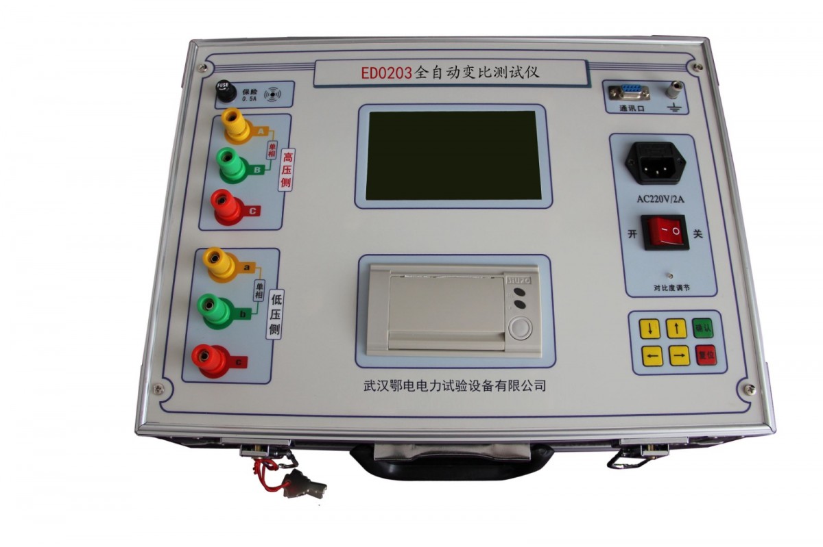 The ED0203 Transformer Ratio Group Tester features a large-screen Chinese character display and menu operation, with an intuitive interface. The ratio groups can be tested all at once. This transformer ratio group tester is the ideal testing instrument for the power industry sector.
