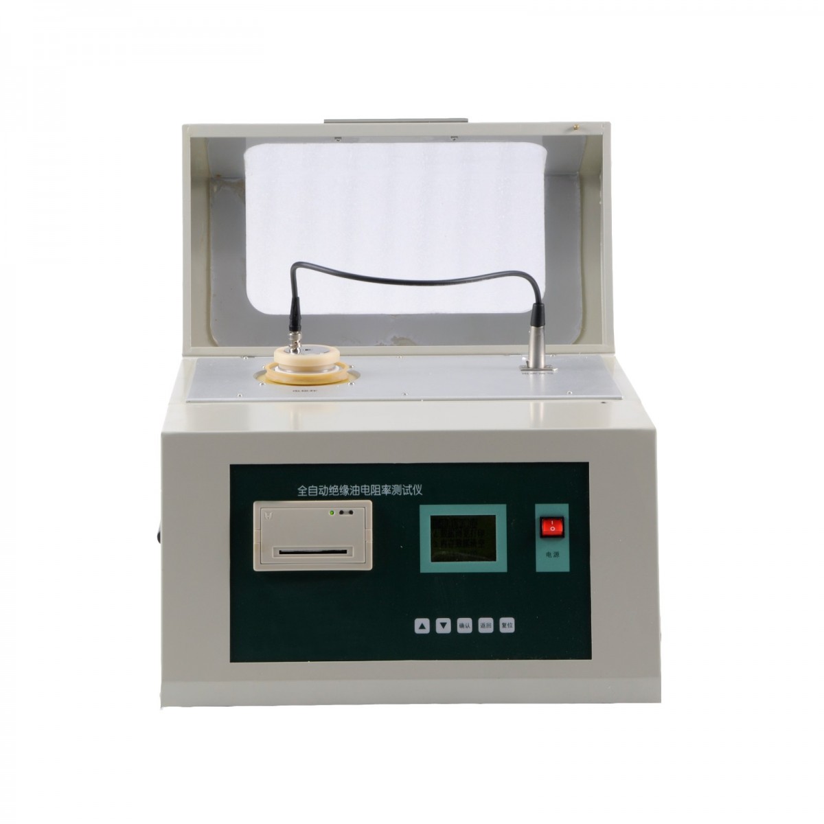 ED6000The Type Integrated Precision Oil Dielectric Loss and Volume Resistivity Tester is a high-precision instrument with an integrated structure designed for testing the dielectric loss angle and volume resistivity of insulating oils and other liquid insulating media. It internally incorporates key components such as the dielectric loss oil cup, temperature controller, temperature sensor, dielectric loss test bridge, AC test power supply, standard capacitor, high-impedance meter, and DC high-voltage source. The heating section employs the advanced high-frequency induction heating method, which offers benefits such as non-contact between the oil cup and the heating element, even heating, rapid speed, and easy control. The AC test power supplyAC-DC-ACThe conversion method effectively avoids the impact of fluctuations in mains voltage and frequency on the accuracy of dielectric loss testing, even when the generator is in use. The internal standard capacitor isSF6The inflatable three-terminal capacitor maintains consistent precision over time, as its dielectric loss and capacitance are unaffected by environmental factors such as temperature and humidity.