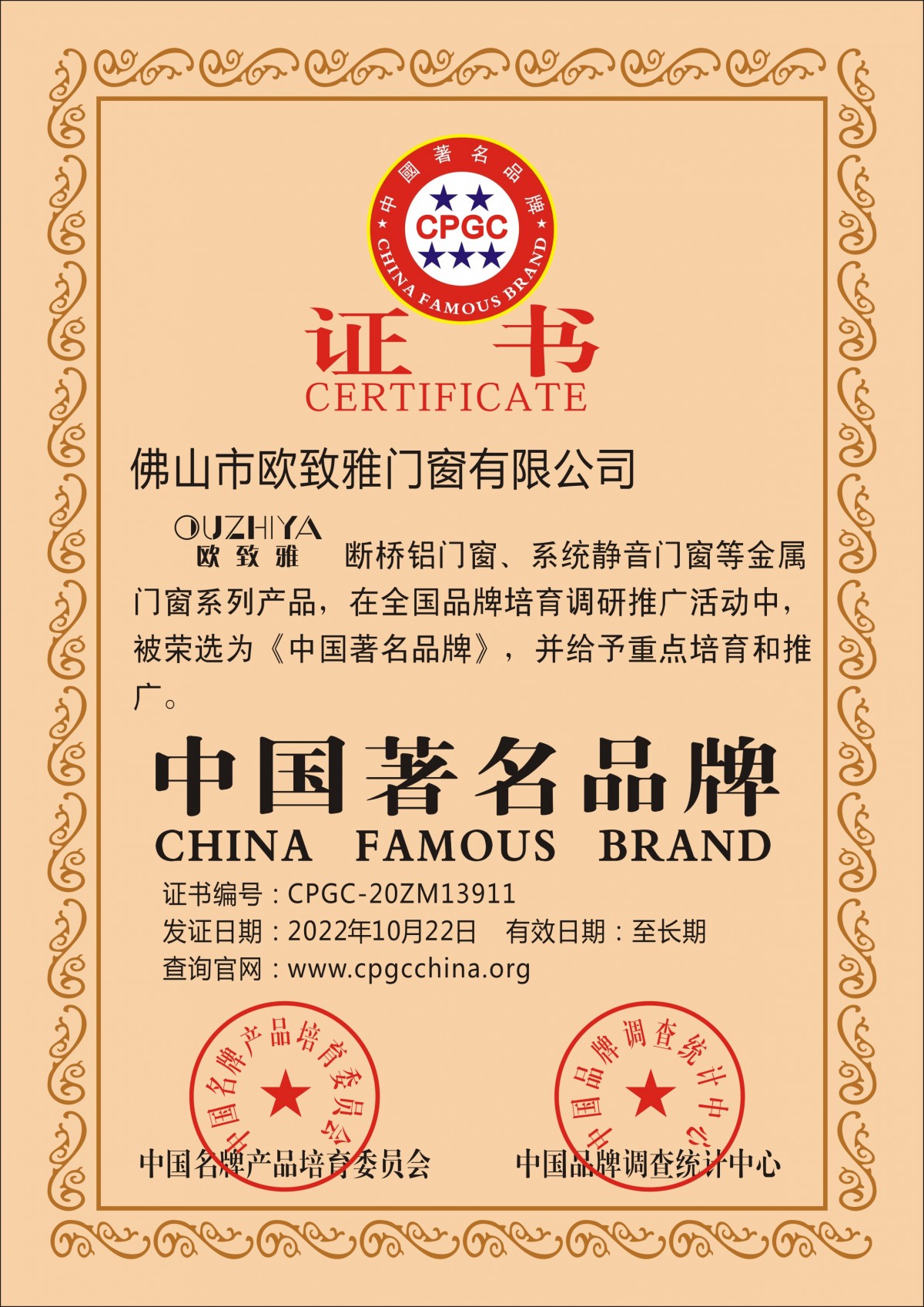 | Issuing Authority: | 中国名牌产品培育委员会 | Issue Date : | 2022-02-10 |