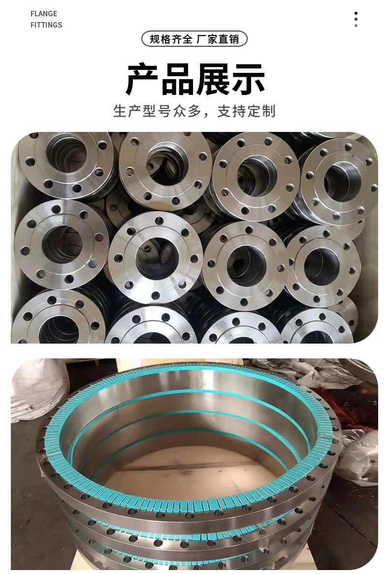 Flanged plate welding is convenient for material procurement, simple to manufacture, cost-effective, and widely used; however, it has poor rigidity, so it should not be used in piping systems for chemical processes that require high vacuum or in highly hazardous environments with flammable or explosive materials. The sealing face types include flat and raised faces. Common standards include HG20592~20635 of the standard chemical industry, GB/T9119 of the national standard, and JB/T81 for machinery. The welding method involves inserting the pipe into the flange for welding. Flanged plate welding is suitable for steel pipe connections with a nominal pressure not exceeding 2.5MPa. The sealing face of the flat welding flange can be made in smooth, concave-convex, and tenon-groove styles. Smooth flat welding flanges are commonly used in mild medium conditions, such as low-pressure non-purified compressed air and low-pressure circulating water. They offer resistance to corrosion, acid and alkali resistance, long service life, reasonable pricing, smooth surface, and aesthetic appearance with strong physical properties.