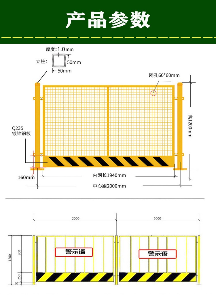 Portable warning grid guardrails,