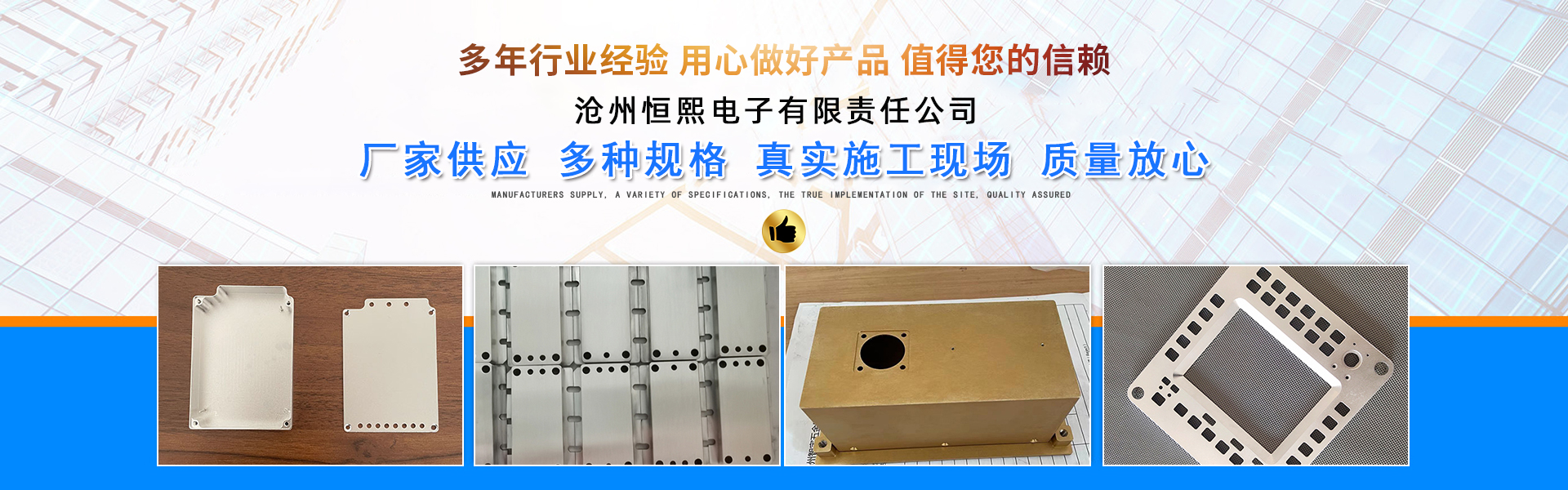 Cangzhou Hengxi Electronics Co., Ltd. has passed the national military standard quality system certification according to GJB9001C-2017 standards. We are a company specializing in the production and processing of products such as module power housing, metal encapsulation housing, CNC custom processing, military thick film integrated circuit housing, optoelectronic packaging, CNC cavity housing, oscillator housing, module pins, lithium battery copper terminals, new energy accessories, and electronic hardware stamping parts. Our factory is equipped with 10T-300T press brakes, presses, forming machines, shears, CNC punch presses, CNC bending machines, Mazak machine centers from Japan, Beijing Jingdiao machine centers, chain tunnel sintering furnaces, 4000W fiber laser cutting machines, and injection molding machines.The company boasts a mold assembly workshop equipped with lathe machines, drilling machines, precise grinding machines, electrical discharge wire cutting, and small hole ma...