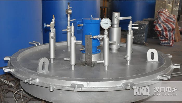 The furnace lid is a double-water-cooled vacuum rubber-sealed stainless steel inner-insulated lid, equipped with a vacuum sealing fan as required by the process.