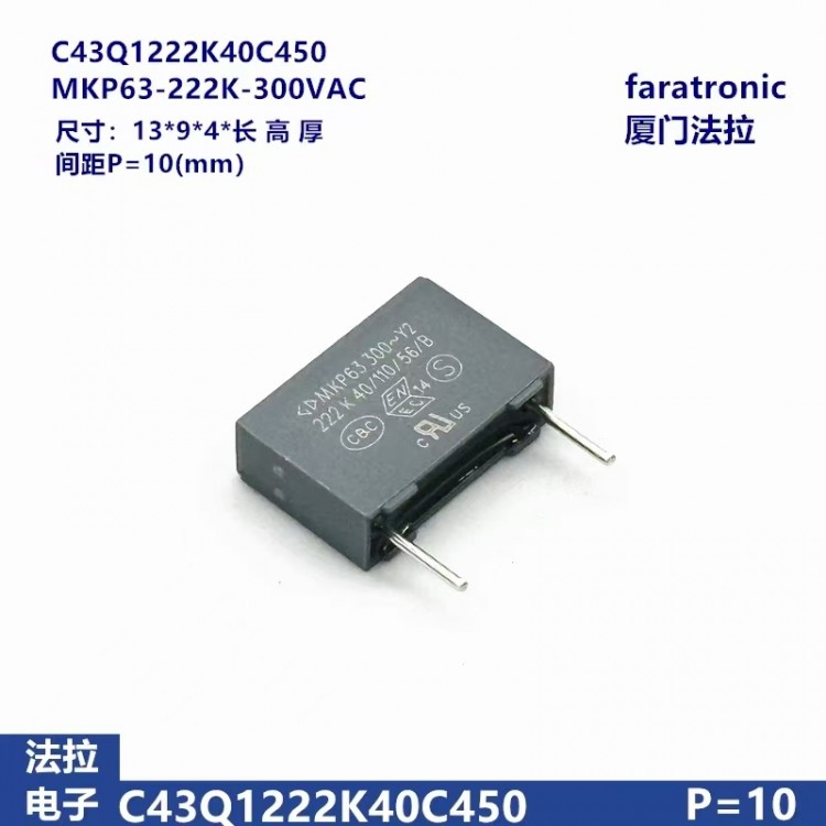 Xiamen Farad Capacitors in stock, FAE application engineers assist in selection, Film Y2 safety capacitors (C43), suitable for front-end power grounding, bypass antenna coupling, and electromagnetic interference suppression.BroadFor inverters, switching power supplies, variable-frequency drives, automotive electronics, etc., thin film Y capacitors replace traditional ceramic Y capacitors, offering benefits such as more stable temperature characteristics and lower impedance. They are mainly used in stringent conditions. Please contact our business department for specific dimensions and parameters. The film Y capacitor replaces traditional ceramic Y capacitors, offering advantages such as more stable temperature characteristics and lower impedance. It is mainly used in stringent application conditions.