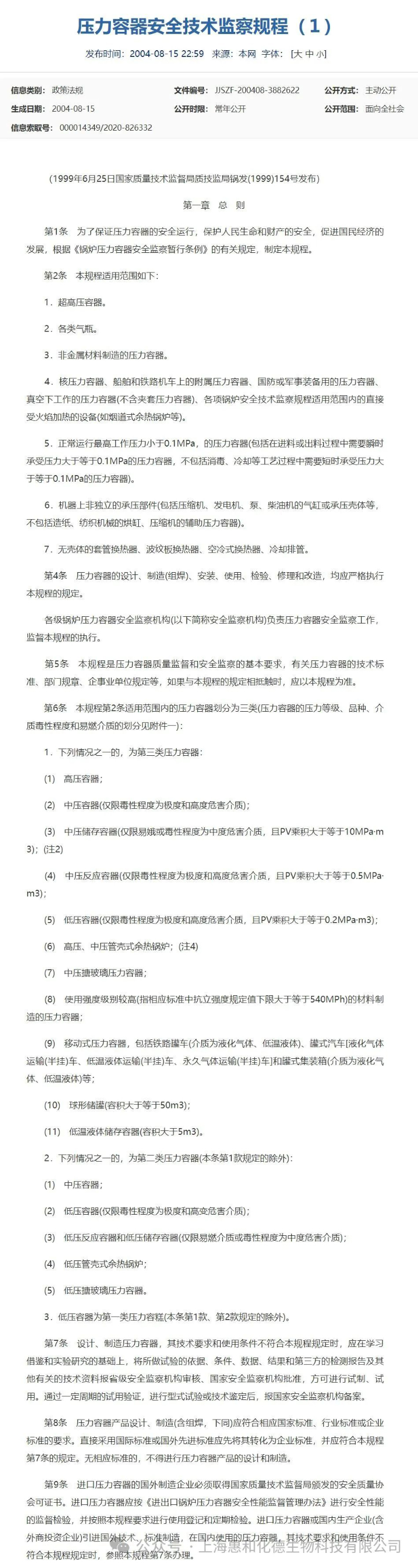 2024-01-08 "Technical Supervision Regulations for Pressure Vessel Safety"_Gadget Dynamics Co., Ltd._Shanghai Huie Hua De Biotechnology Co., Ltd.
