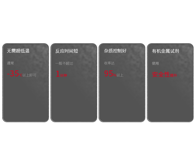 2021年开发的**中间体低温反应装置,可实现有机金属拔氢、连续甲基化、和连续淬灭三步连续反应,通量10000吨/年,产能50吨/年。运行平稳工艺弹性良好,提升反应温度实现能耗降低,成为业主方重点推荐项目。