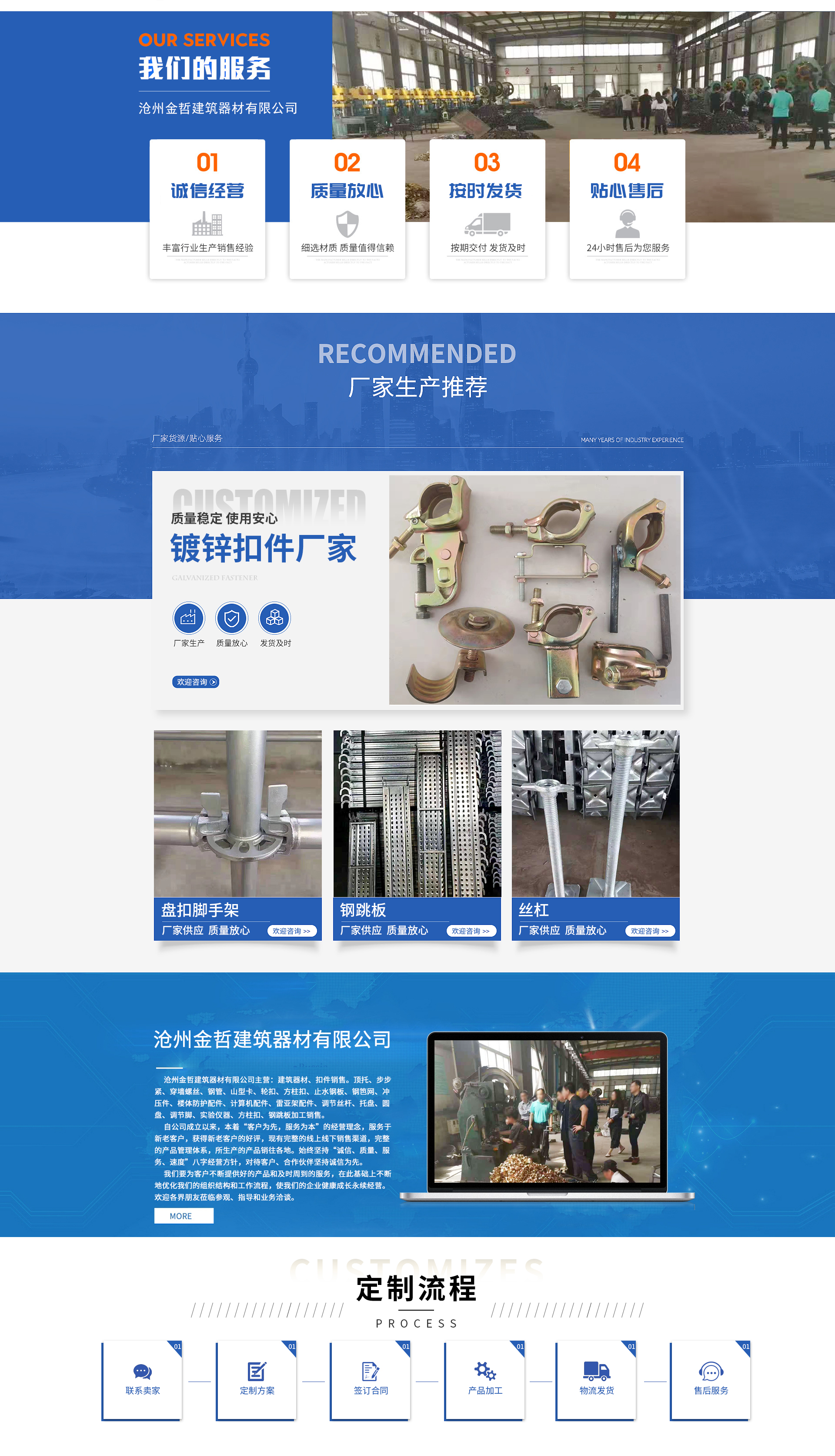 Cangzhou Jinzhe Construction Equipment Co., Ltd. was established on January 20, 2020, with its registered address at Longhua Village, Chenzhuang Town, Xian County, Cangzhou City, Hebei Province. The legal representative is Liu Ruiguang. The company's business scope includes the processing and sales of top supports, step ladders, wall screws, steel pipes, mountain-type clips, wheel nuts, square column clips, waterstop steel plates, steel mesh, stamping parts, building protection accessories, computer accessories, ladder frame accessories, adjusting screw rods, trays, discs, adjusting feet, experimental instruments, square column clips, and steel plank ladders; as well as the sales of construction equipment and fasteners. (Operate as permitted by relevant laws and regulations.)