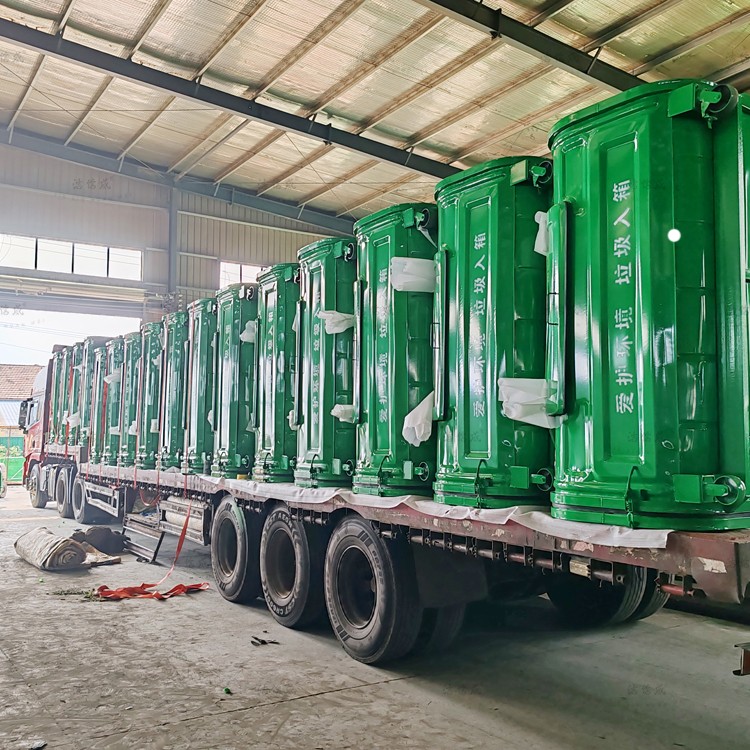 This customer's order includes all-green hook arm swing arc waste bins, crafted using the vacuum forming process. These bins are versatile and compact, making them easier to handle, thus reducing the labor intensity for sanitation workers. Made of carbon steel, they are coated with spray paint, resulting in a bright and attractive finish. These bins are also moisture-proof, corrosion-resistant, termite-proof, rust-proof, heat-resistant, and easy to clean. The sealed design of the feed opening prevents leakage of garbage juice during transportation, reducing secondary pollution and the spread of odors and pests. The hook arm bin cover features a metal mechanical support rod. The rear door of the hook arm bin is equipped with a locking mechanism, allowing for easy manual opening and waste disposal using a hook arm truck. These bins are placed along roadsides, property complexes, schools, and other locations, not only keeping the city clean from oil-stained waste but also facilitating the cleaning process for sanitation workers without affecting the bin's appearance, ensuring a longer service life.