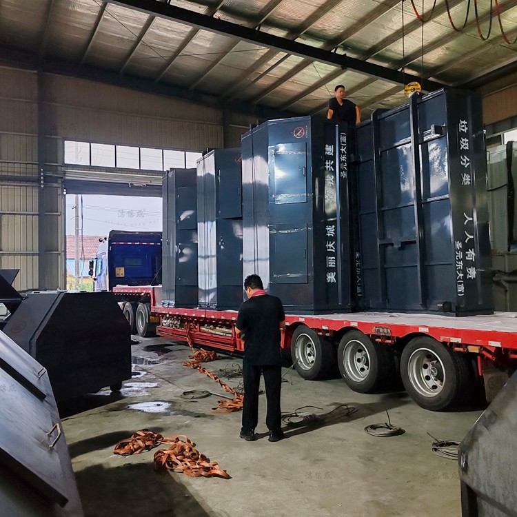 July 12, 2023 - Twelve 8-cubic-yard hook arm waste bins and five 3-cubic-yard hook arm waste bins have been shipped to Qingyang, Gansu. Hook arm waste bins are a product used in various industries such as cleaning and environmental sanitation, providing cleanliness, hygiene, and environmental protection to cities, communities, and public spaces. They are an omnipresent eco-friendly product in everyday life.
