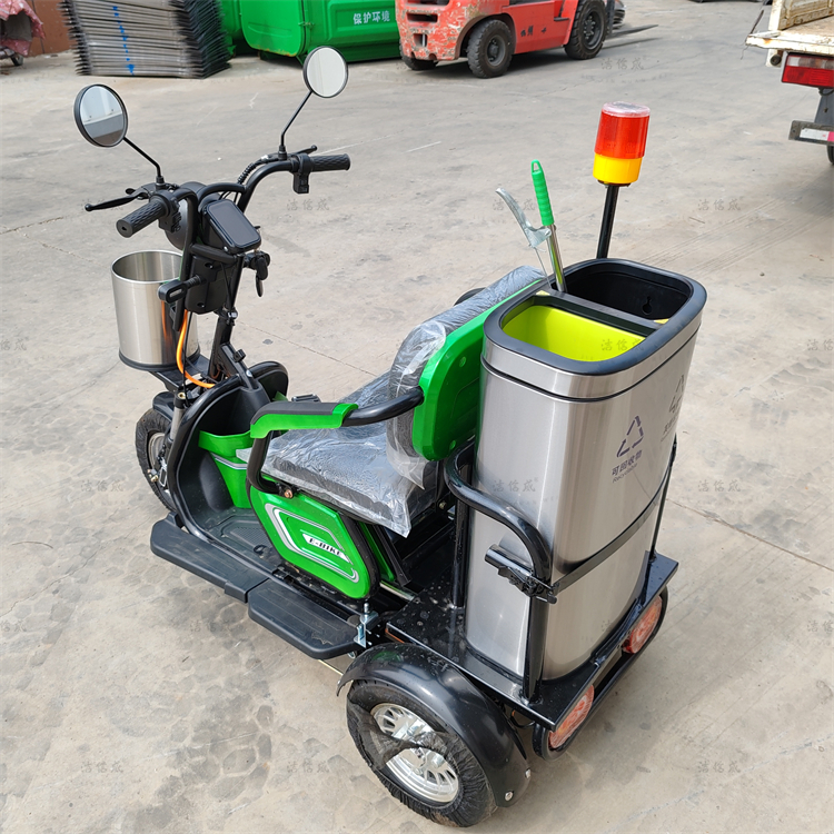 Electric leisure cleaning carts, compact in size, primarily designed for cleaning purposes. Battery-powered with a safe and eco-friendly drive system. Equipped with LED high-intensity headlights, a clear and smooth electronic dashboard, a stainless steel storage box at the front, one-touch speed adjustment, and a solar-powered emergency light to ensure driving safety. The rear features a 60L stainless steel dual-sorting trash bin for easier waste collection. With excellent performance and reliability, these carts are convenient and flexible, requiring only one person to operate. In our current urban environment, the usage rate of cleaning carts is very high. Moreover, they have greatly facilitated the work of sanitation workers.