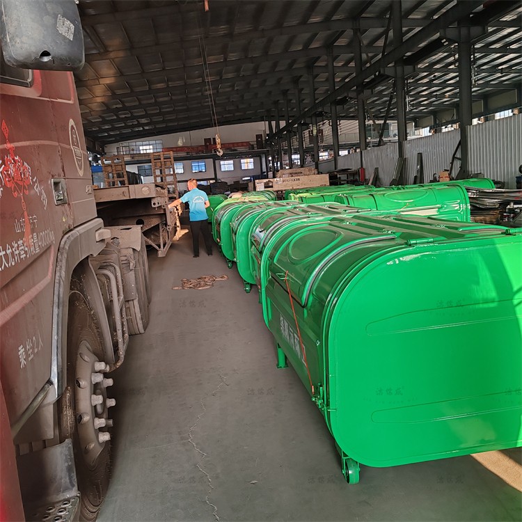 Today's dispatch includes two hook arm garbage trucks and 30 hook arm garbage bins. These bins are crafted using vacuum forming technology, made of carbon steel, and coated with spray painting and baking varnish, offering a bright and attractive appearance. They feature moisture-proof, anti-corrosion, anti-pest, anti-rust, high-temperature resistance, and easy-to-clean properties. They are currently popular garbage collection and transportation tools in the domestic market. The hook arm garbage trucks are powered primarily by the engine of the truck's chassis, utilizing a take-off device installed on the transmission, which has an oil pump. These functions, such as lifting, unloading, and self-unloading of the bins, are manually or electrically controlled by a hydraulic mechanism. The garbage trucks can simultaneously operate with multiple bins, enabling circular transportation to maximize vehicle capacity. Each truck can carry multiple bins, saving energy and costs. They are suitable for immediate waste collection in urban and suburban areas.