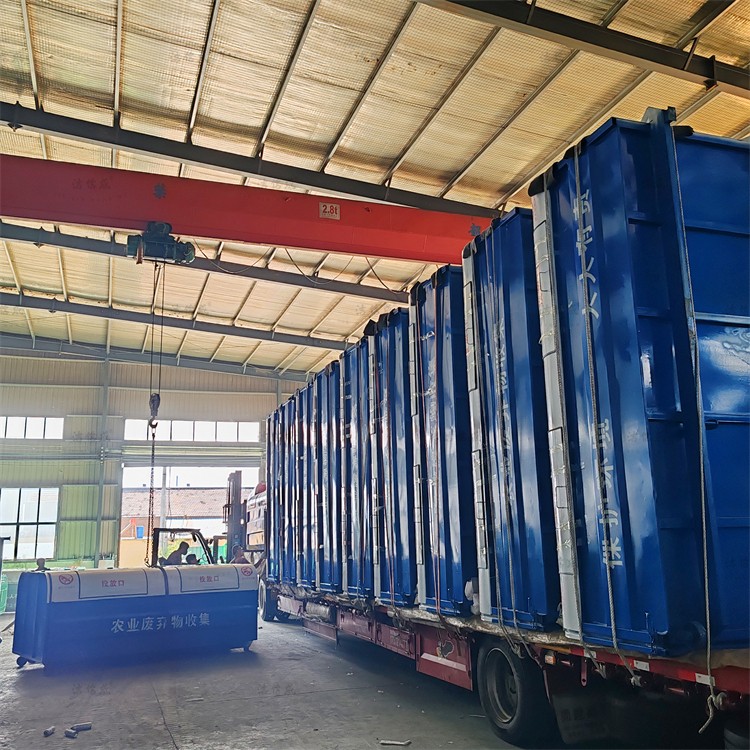 Our hook arm trash bins can be customized to meet customer needs in terms of shape, capacity, material, color, and environmental slogans. This bin features an upper round and lower straight shape, with smooth and flowing lines and no sharp edges. Made of carbon steel, it is resistant to rust. The surface is coated with electrostatic powder coating, resulting in a glossy finish and even color. The upper part of the bin is white, while the lower part is blue. The environmental slogans on one side read "Protect the Environment, It's Everyone's Responsibility," and on the other, "Agricultural Waste Collection" to enhance public awareness of environmental protection. The sealing area uses rubber strips to prevent secondary pollution during transportation. These bins are widely used in outdoor public places such as city streets, garden communities, industrial parks, campuses, and construction sites.