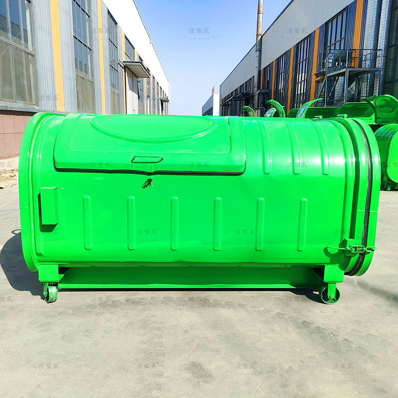 Compactor trash bins have a larger capacity than standard trash bins, ranging from 2 to 18 cubic meters. Standard plastic trash bins can only hold 240 liters, which does not meet practical needs. In residential buildings, squares, and parks, using plastic trash bins can lead to garbage堆积 or scattered on the ground, affecting the city's appearance. However, by using compactor trash bins, this issue can be resolved. They can be used with compactor trucks, with one truck being compatible with 20 to 50 bins for circular waste collection and transportation, thereby maximizing vehicle utilization. The lid-sealed design of compactor trash bins prevents secondary environmental pollution during collection and transportation, as well as keeps rain out, prevents odor dispersion, and avoids breeding various pests.