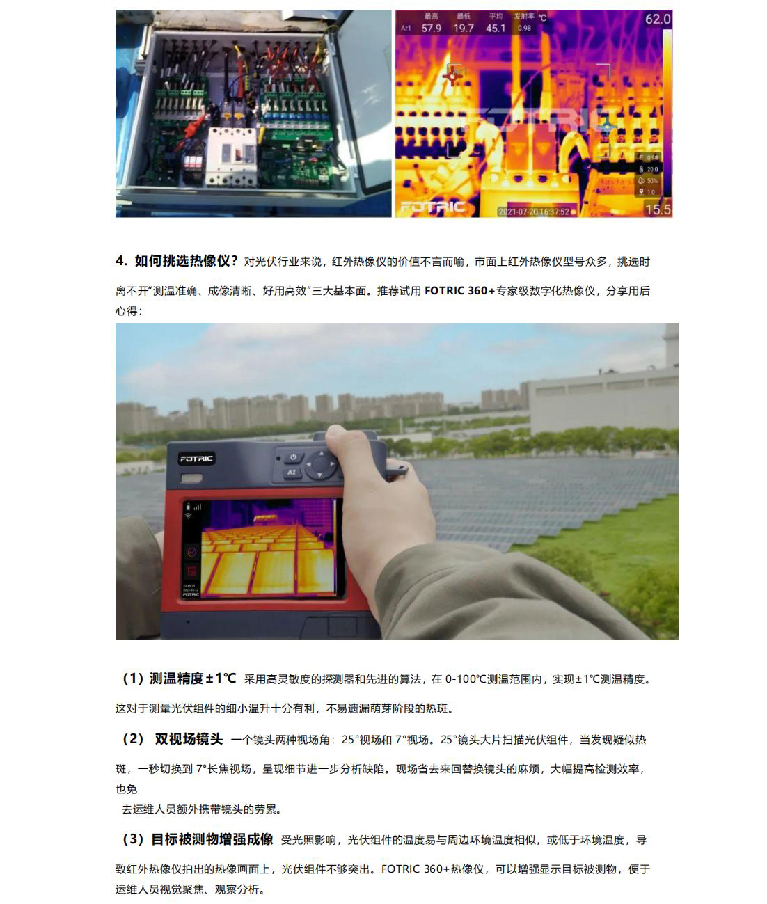 Detail-enhanced imaging, photovoltaic inverter testing, PV string box testing, precise temperature measurement, dual field-of-view lens