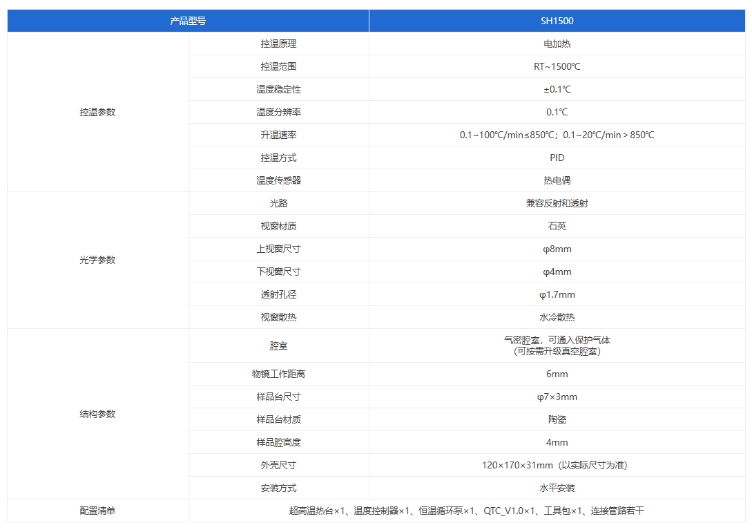 超高温热台可在RT~1500℃ 的温度范围内进行控温,实现样品在高温环境下的原位变温光学观察及相关测试。
