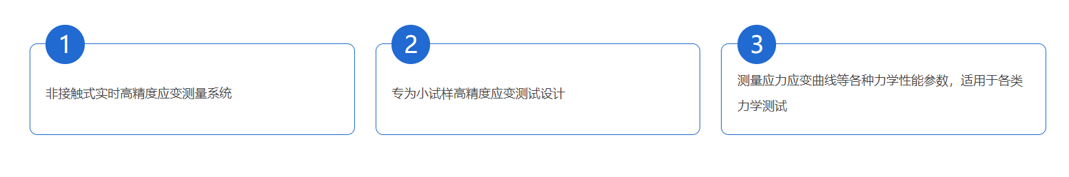 LVE-MICRO series video extensometers, designed for high-precision strain testing on small specimens. Displacement accuracy can be实测 as less than 0.001mm. The equipment features fixed field of view and testing distance, calibration-free, ready-to-use. It has the function to eliminate the bias caused by partial off-face twisting. Functionally identical to LVE-PRO, it can measure both longitudinal and lateral strains. It can real-time capture and display the longitudinal and lateral strain curves of the specimen. Optional full-field strain module is also available for full-field cloud map calculation.
