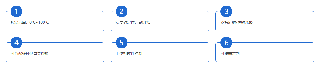 Supports integration with various microscopes (Leica, Olympus, Nikon, Zeiss, etc.), spectrometers (infrared, Raman, fluorescence, etc.), and other optical instruments. Temperature control is available within the range of 0℃ to 100℃, enabling in-situ optical observation and related testing of samples under open conditions with reflection/transmission.