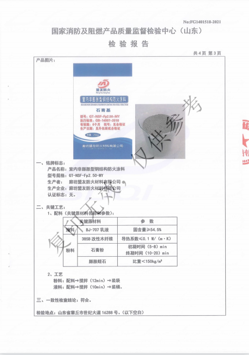 DT-NSF-Fp2.50-MY/室内非膨胀型钢结构防火涂料_Honor Qualification Co., Ltd._Langfang盟友Fire Retardant Materials Co., Ltd.