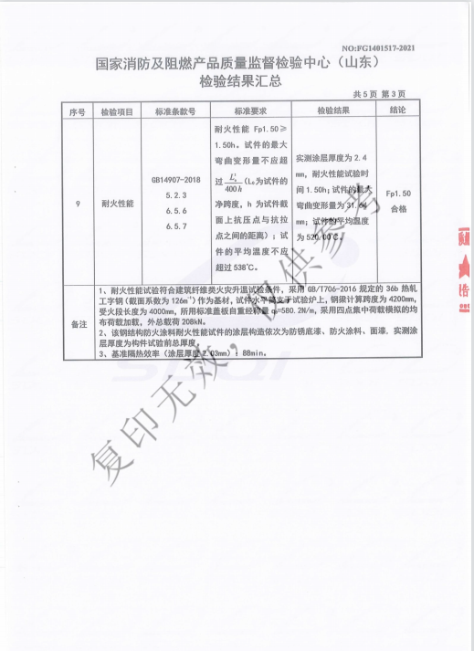 证书名称: GT-WSP-Fp1.50-MY/室外膨胀型钢结构防火涂料