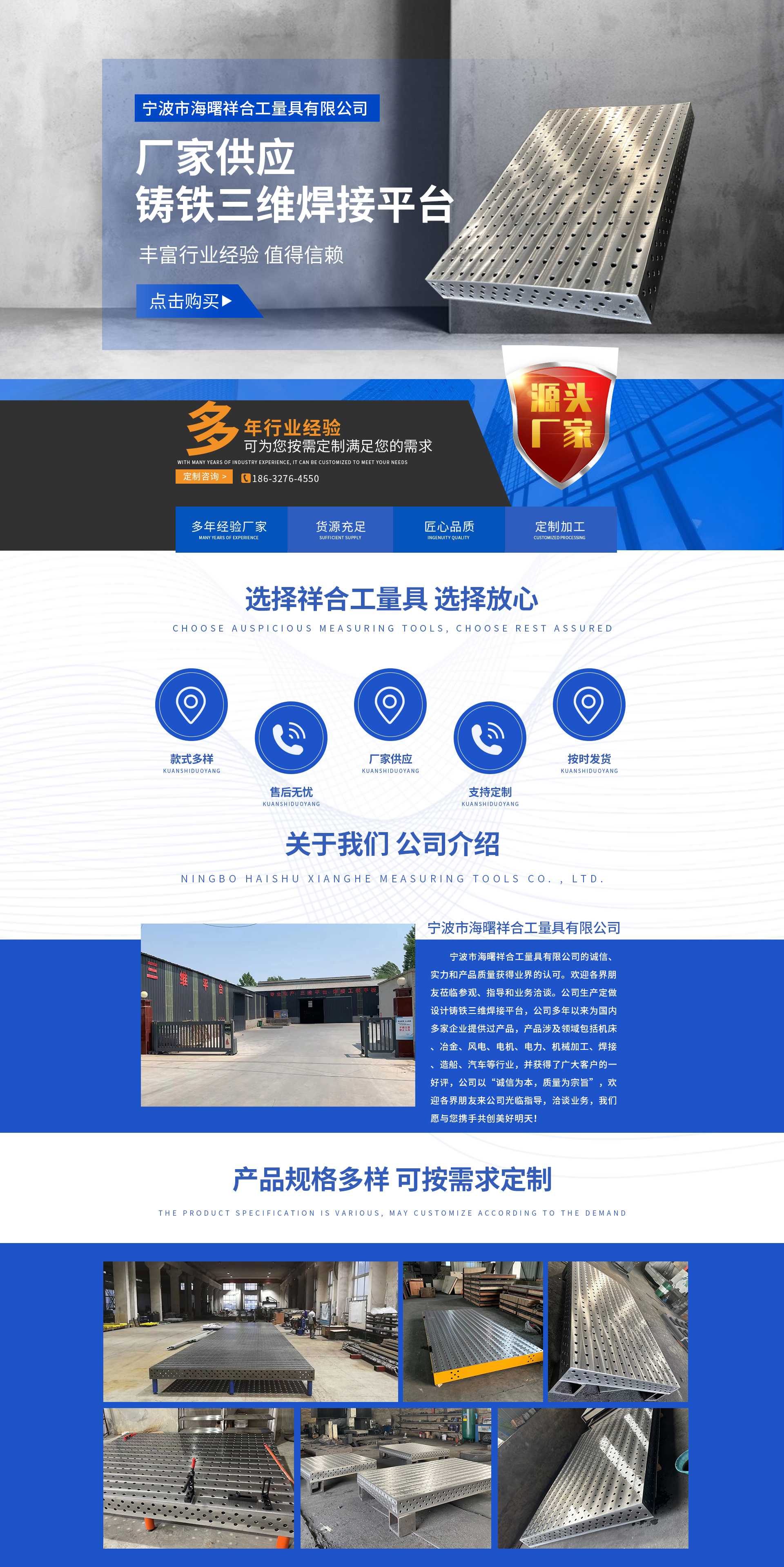 Ningbo Haishu Xianghe Measuring Tools Co., Ltd. is recognized in the industry for its integrity, strength, and product quality. We welcome friends from all walks of life to visit, provide guidance, and engage in business negotiations. The company produces and custom-designs cast iron three-dimensional welding platforms. Over the years, we have provided products to numerous domestic enterprises, covering fields such as machine tools, metallurgy, wind power, motors, electricity, machining, welding, shipbuilding, and the automotive industry, and have received high praise from a wide range of clients. Guided by the principle of "integrity as the cornerstone and quality as our tenet," we invite friends from all sectors to visit our company for guidance and business discussions. We look forward to working together to create a brighter future!