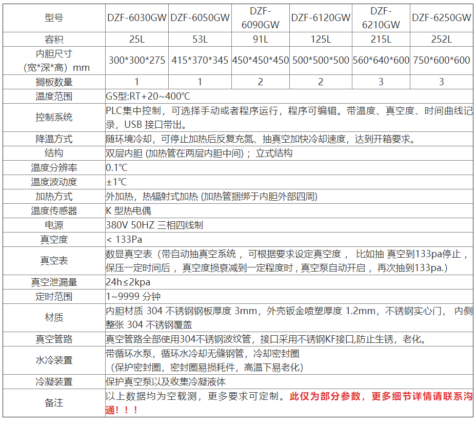 High-Temperature Vacuum Oven Product Parameters