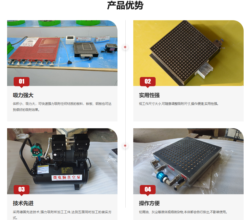 Adjustable吸附size based on work dimensions, easy to operate, highly practical.