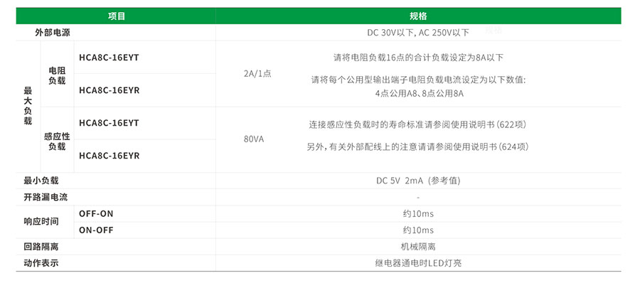 继电器输出规格:
