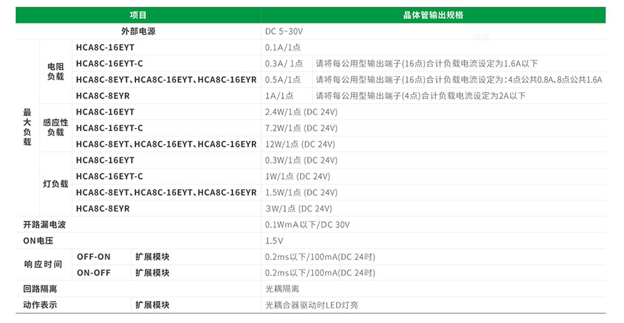晶体管输出规格: