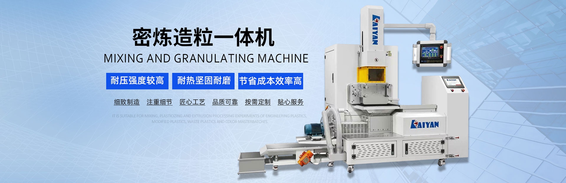 Dongguan Kaoyan Mechanical Technology Co., Ltd. is a professional manufacturer of quality testing instruments. The company established its factory in Dongguan, Guangdong in 2009, specializing in the production of testing equipment. Kaiyan Technology independently develops and produces 50ml/0.5L/1.5L/3L/5L/10L/20L products, including small extruders, twin-roll tablet presses, open mixers, vulcanizers, flat tablet presses, single/screw twin-screw extruders, wire extruders, and integrated compounding granulating machines. Quality guaranteed, worry-free after-sales service, customer-approved, and peace of mind for your purchase!Kaiyan integrates professionals in software design, mechanics, mechanics, hydraulics, electronics, electromotors, as well as research and development, quality assurance, production management, and calibration. We gather real-time information to produce high-quality products and provide excellent services. Our production process adheres to...
