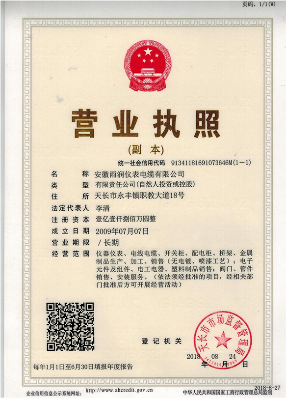 | 发证机构: | 天长市市场监督管理局 | 发证时间 : | 2009-07-07 |