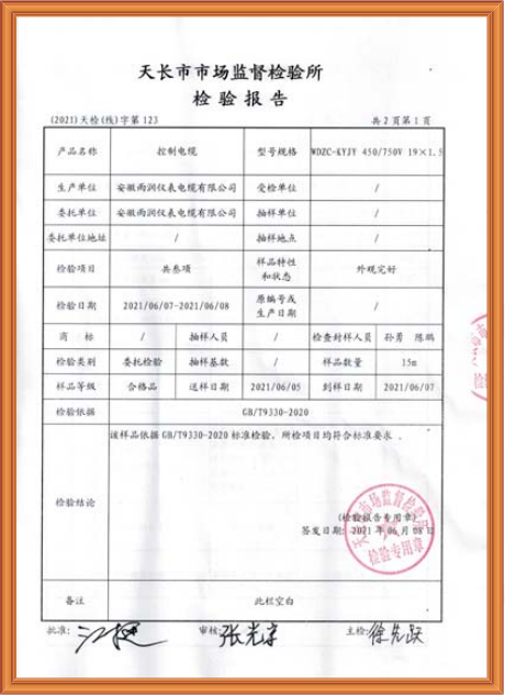 Home > Honor Qualification Co., Ltd. > 控制电缆检验报告
