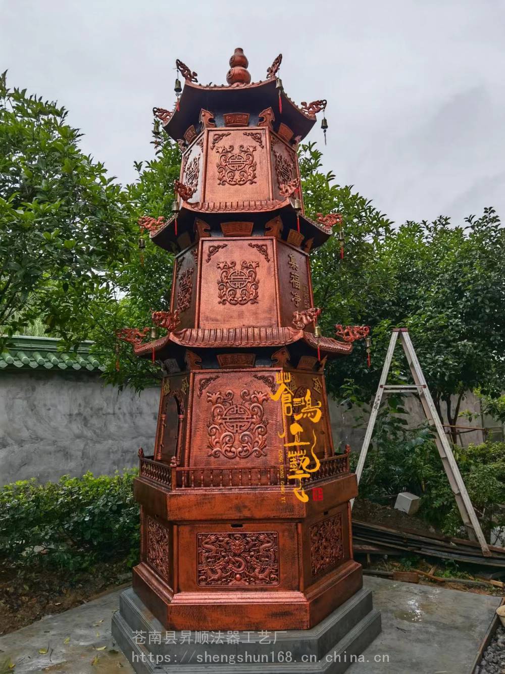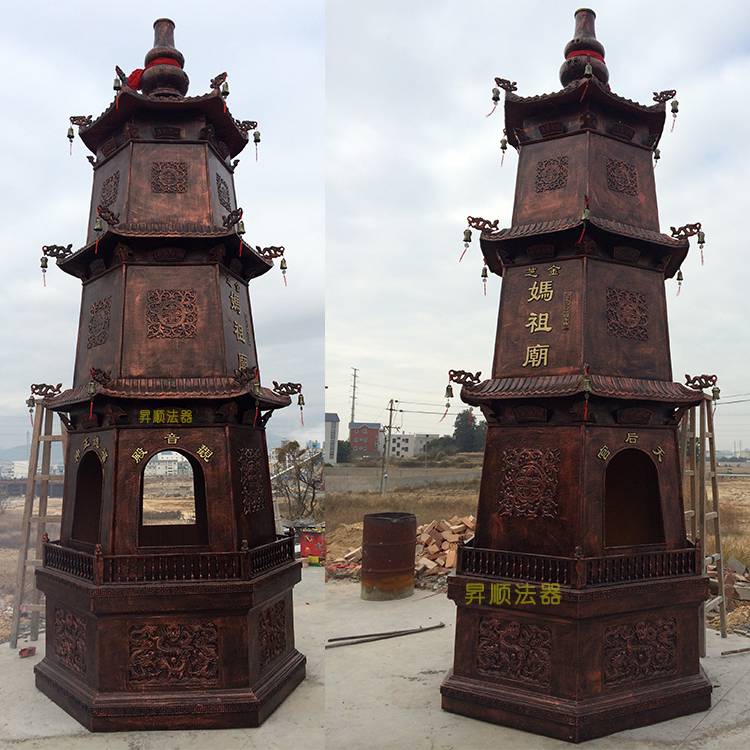 Three-story temple hexagonal cast iron incense burner, 1.7-meter diameter pig iron coin melting furnace, treasure refining furnace