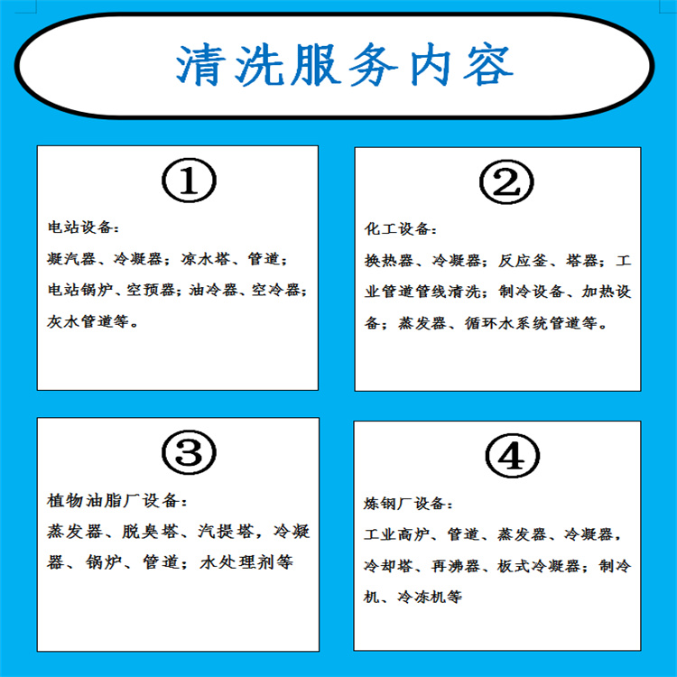 Our company has newly acquired domestic cleaning machines and imported cleaning equipment. We have hired experienced technical specialists in the cleaning industry, which has enabled the cleaning of heat exchange equipment to be standardized and standardized.