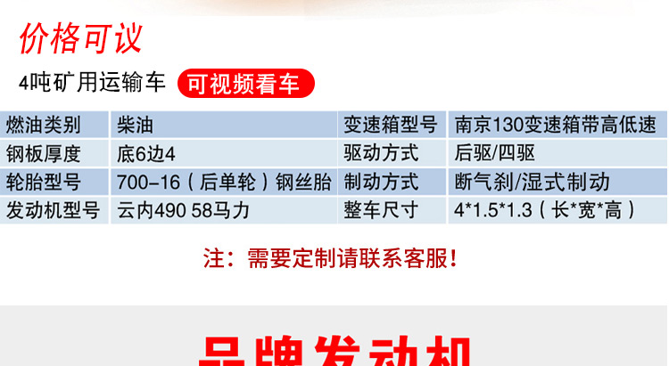 力牛4吨矿用运输车 四不像车 隧道引水洞用车 工程车厂家直销