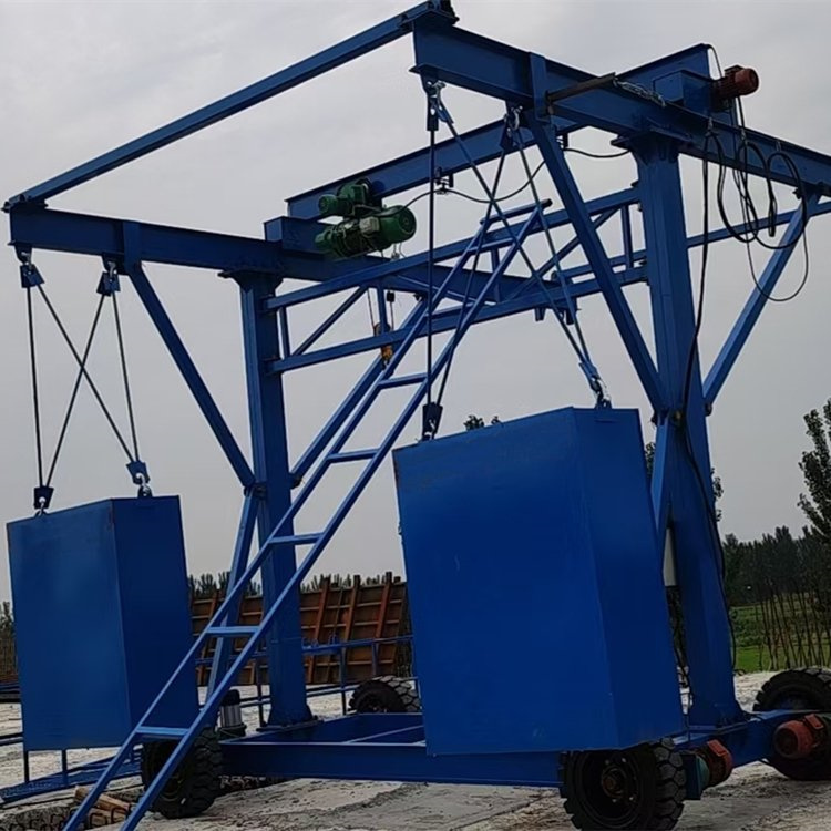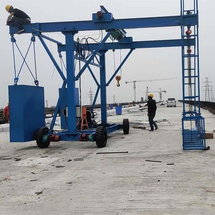 Comprised of a reversible walking chassis (including front axle steering system, rear axle drive system, undercarriage, etc.), brackets, stabilizing frames, beams, spacers, running beams, sliding frames, pulley brackets, wire rope slings, electric wire hoists, manual winches, electrical control cabinets, remote controllers, and counterweights.