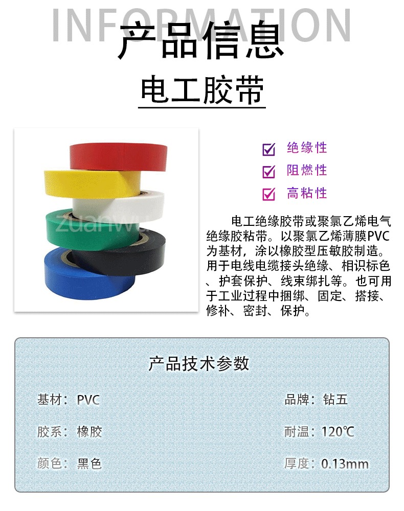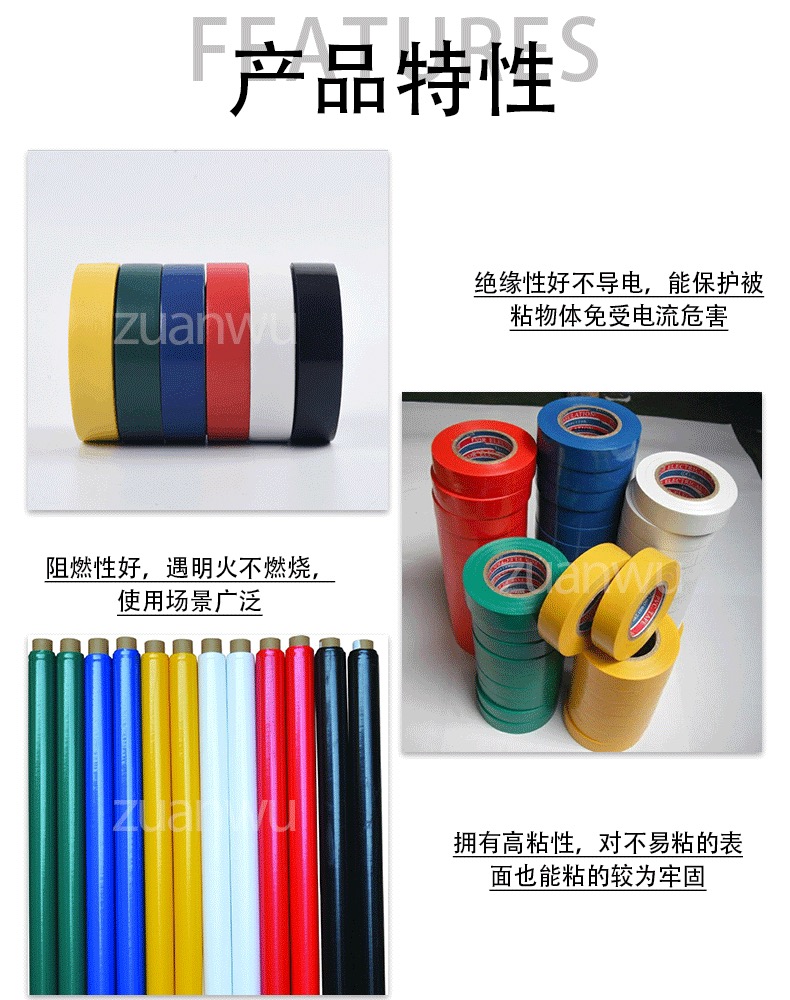 Application: Used for insulation of wire and cable joints, color coding, sheath protection, harness bundling, etc. Also suitable for binding, securing, splicing, repairing, sealing, and protecting in industrial processes.